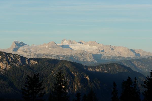 Herrlich zeigt sich das Dachstein-Massiv mit dem Hallstätter Gletscher im Zoomblick.
