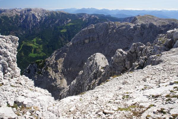 Die Schlüsselpassage der Tour wartet beim südwestseitigen Abstieg vom Kleinen Hochkasten ...