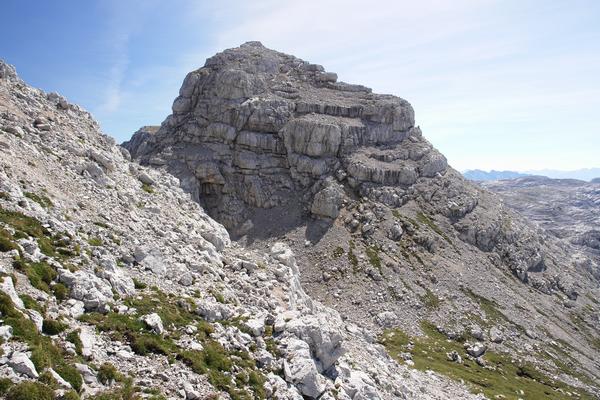 ... und aus der Scharte über dem Brentnerkar geht es wieder steil auf ein Felsköpfl hinauf. Wahlweise direkter mit einigen kurzen Klettereinlagen über die Felsstufen oder aber über leicht ausgesetztes Gehgelände auf der rechten Seite.