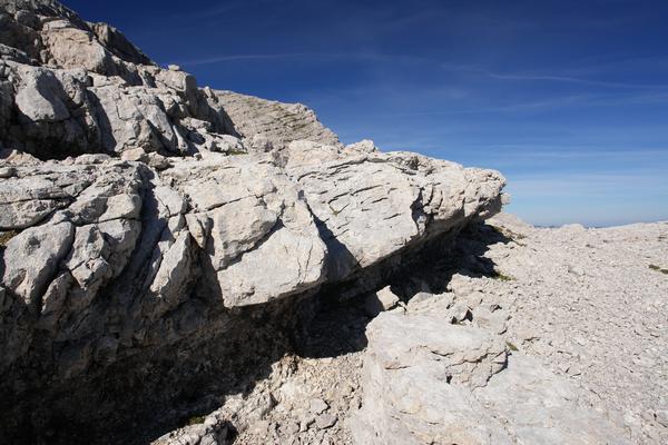| Und tatsächlich sollte ich bei Einbruch der Dämmerung das Steiglein einige Male aus den Augen verlieren. Das GPS war mir heute eine große und überaus wertvolle Hilfe. Über die an ein Bollwerk erinnernden Felsformationen geht es wieder hinauf auf den Großen Hochkasten. |