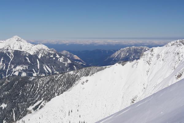 Weit im Norden erkenne ich über dem oberösterreichischen Flachland die in der Wettervorschau angekündigte Nebeldecke.