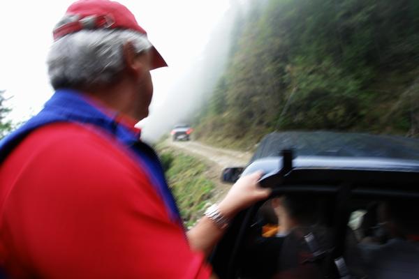 | Etwa 1 Kilometer oberhalb der Baumgartenalm, deren Zufahrtsstraße für den Individualverkehr mittels Schranken wirkungsvoll versperrt ist, mußten wir unsere "Normal-Autos" abstellen. Weiter ging es mit Hilfe von speziell ausgerüsteten Pickups, zu deren Inbetriebnahme man nur durch in jahrelanger Ausbildung erworbenen Zusatzqualifikationen (analog zum Werkmeister bei Humboldt) befähigt ist. Christoph und Taxi Kol brachten uns aber sicher ans Ziel. |