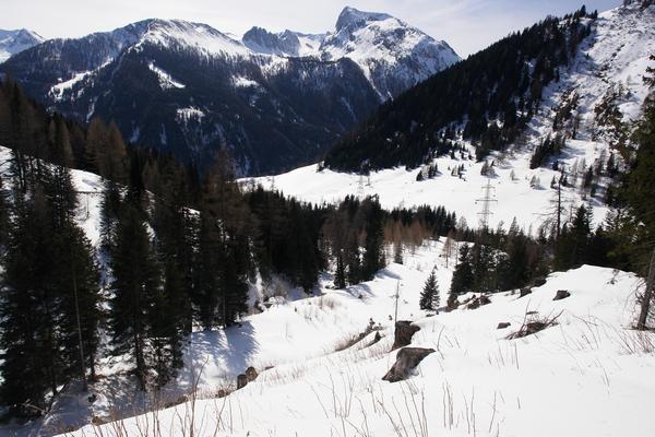 ... denen ich durch den teilweise recht dichten Wald talwärts folge.