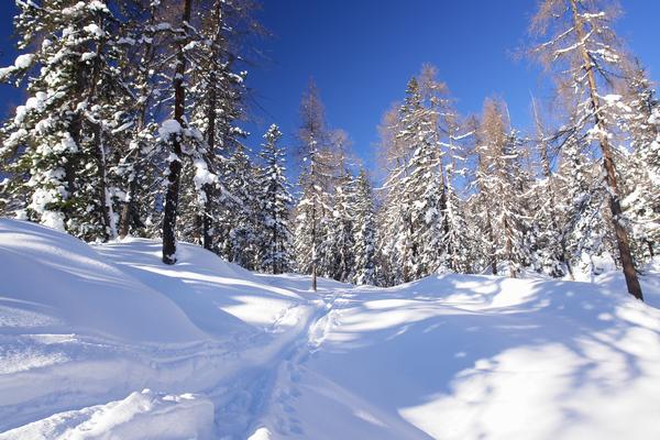 Die satte, lockere Pulverauflage läßt Vorfreude auf die Abfahrt aufkeimen.