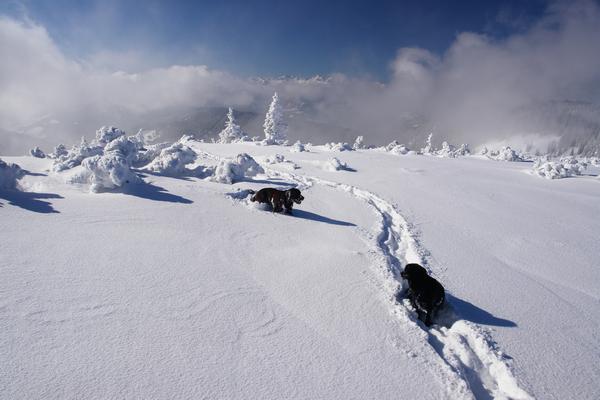 Nico und Sammy streunen in der Zwischenzeit am Gipfel herum.