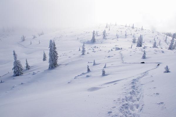 ... und tauchen - unseren Aufstiegsspuren folgend - wieder in die Nebelsuppe ein.