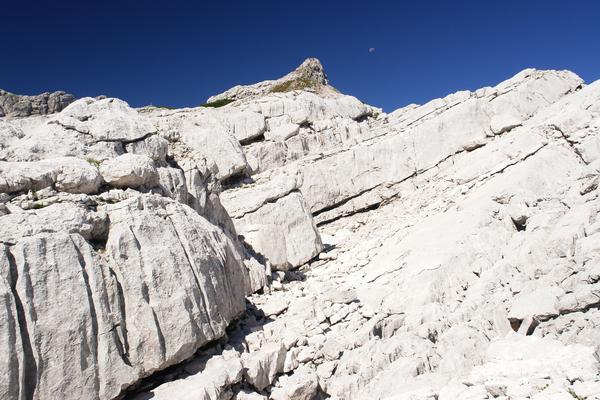 Schließlich habe ich den breiten Südrücken des Hochplattenkogels erreicht. Immer wieder sind kleinere Felsblöcke zu übersteigen. Blick Richtung Süden zum Rotgschirr.