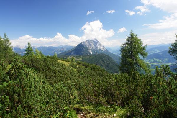 Von der Kammalm führt meine Route nun ostwärts auf das Zirmel, wo sich der Ausblick wieder Richtung Osten zum Grimming öffnet.