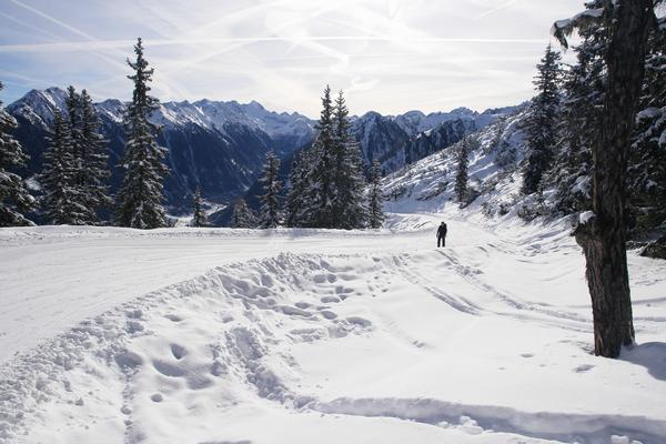 Am obersten Abschnitt folgen wir ein kurzes Stück der Rodelbahn, ehe wir die Schipiste nahe der Hochwurzen-Bergstation erreichen.