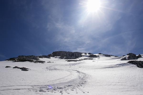 Dann folgt die Abfahrt - trotz der Sonne auch am frühen Nachmittag bei gar nicht so üblen Schneebedinungen.