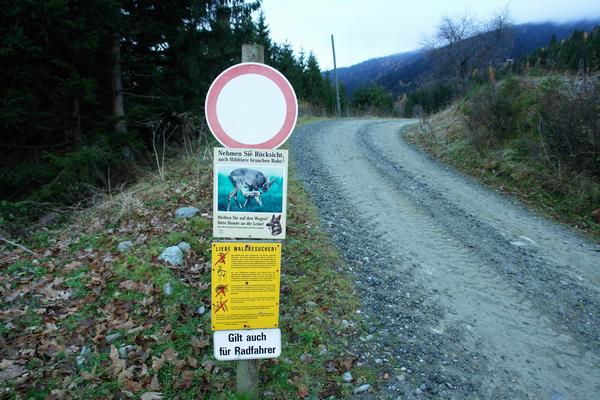 Gleich nach dem Start die für das Gullingtal üblichen Verbotstafeln