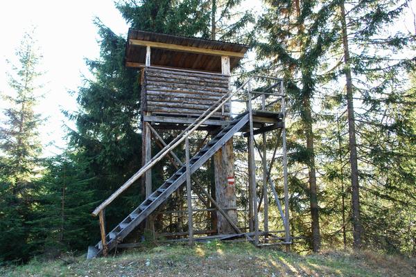 ... gelange ich wieder auf Wandermarkierungen. Entlang der Forststraße und so manchem Hochsitz vorbei ...