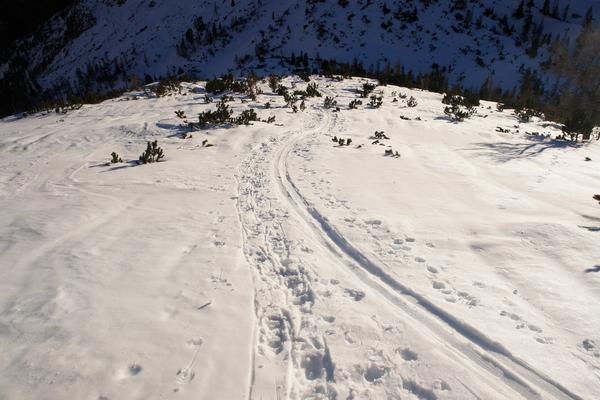 Beim Abstieg kommen uns noch einige Schitourengeher entgegen.