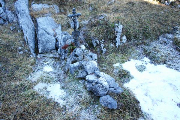 An einem Grab mit kleinem Eisenkreuz vorbei