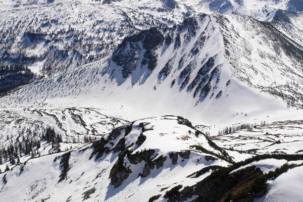 Eindrucksvoll zieht sich das Gnadenkar aus der Hafeichtscharte (rechts) nördlich vom Spatzeck Richtung Osten (nach links).