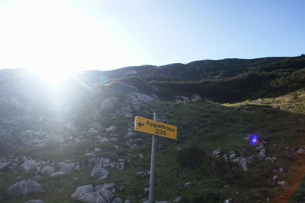 Bei einem Wegweiser Richtung Nordwesten zum Appelhaus verlassen wir den markierten Wanderweg ...