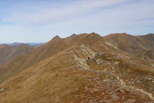 Auch der weitere Routenverlauf ist unschwierig. Der anfangs breite Wiesenrücken wird zwar am Weg zur Fussihöhe (in den Karten als Punkt 2.315 vermerkt) etwas schmäler ...
