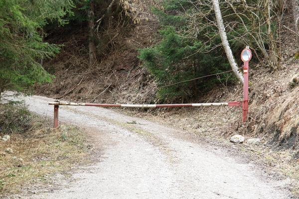Beim Forststraßen-Schranken auf 720 Meter Höhe gelangen wir schließlich wieder zurück zum Anstiegsweg.