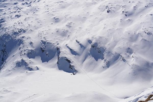 ... auf den 2. Blick erkennt man eine dünne Aufstiegsspur, die sich von rechts unten in Richtung Bildmitte zieht, und am oberen Ende 2 "Ameisen".