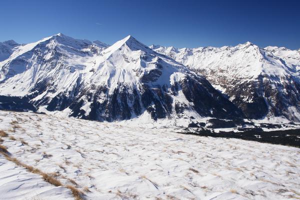 Besonders der Anblick des markanten Ritterkopf (3.006) zieht mich in seinen Bann. Links dahinter der Hocharn, mit 3.254 Meter der höchste Gipfel der Goldberggruppe. Rechts hinter dem Ritterkopf in der Ferne: Der Großglockner.