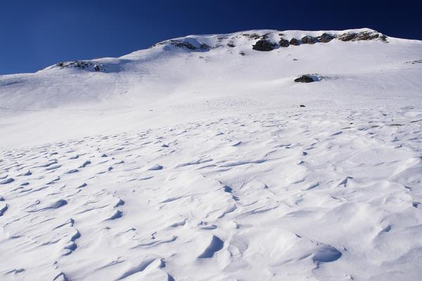 Dann beginnt die Abfahrt über meist schwierigen Bruchharsch.