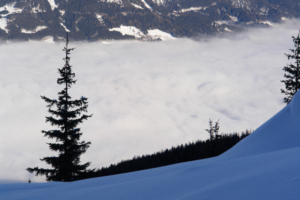 Im Foto kommt es leider nicht so gut zum Ausdruck, aber Einbuchtungen und Erhebungen im Nebel wirken so, als würden sich da Wirbel und Strömungen bilden.