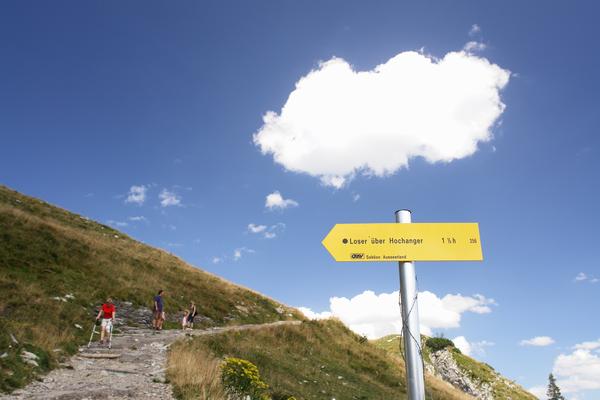 ... und auf breitem Pfad steigen wir wieder hinab zur nahen Loseralm, hinter uns eine schöne Wolke bewundernd.