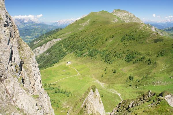 Unter uns die Schernbergalm. Rechts dahinter die Höllwand (Wandertour am 26.10.2008).