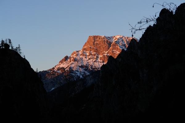 Zurück beim Ausgangspunkt. Der Große Buchstein im letzten tieforangen Licht des ausklingenden Tages.