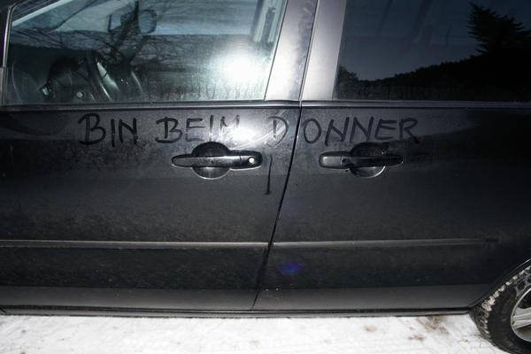 Auch der Aufenthalt von Ingrid, die ich im Abstieg nicht mehr einholen konnte, war rasch geklärt. Hinweis: Gleich neben dem Parkplatz gibt es einen Gasthof Donner ;-)
