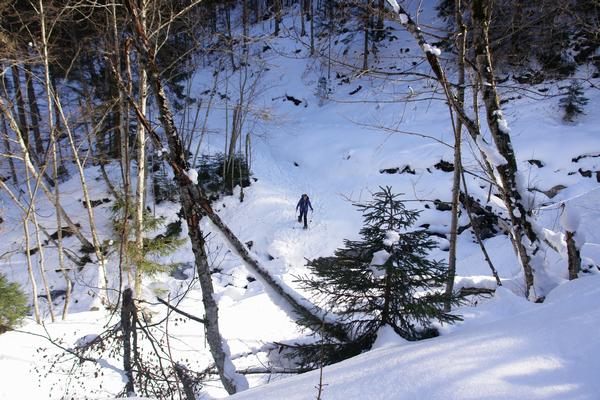 Dazu folgen wir dem markierten Sommerweg, der sich im untersten Abschnitt über zahlreiche Serpentinen durch den Wald schlängelt.