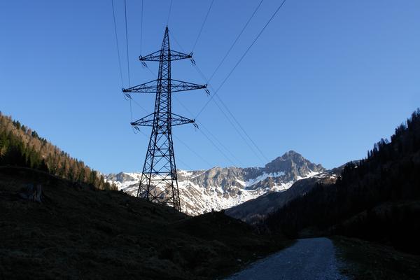 Weiter geht es auf der Almstraße - begleitet von häßlichen Strommasten - hinein in den Talkessel ...