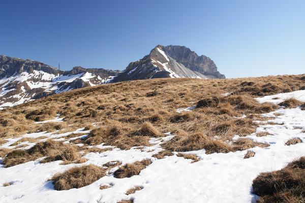 ... hinauf zum Plateau der Aignerhöhe. Im Hintergrund erkenne ich schon mein Gipfelziel - die Stampferwand.