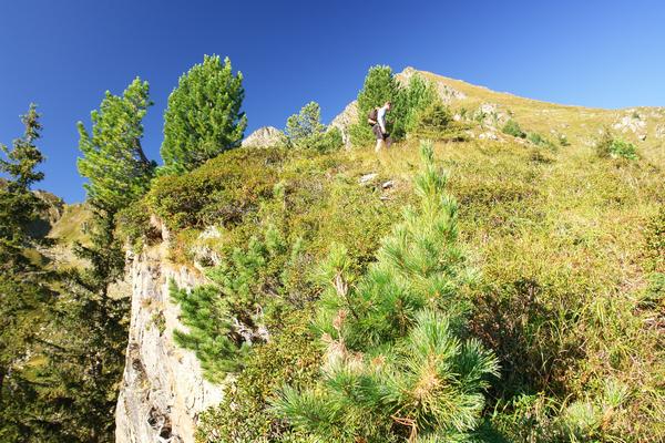 Anfängliche Versuche über die Südseite haben wir wieder aufgegeben und uns stattdessen auf der Nordseite durchs morsche Gstauda aufwärts gehantelt. Erst oben hat Martin ein brauchbares Steiglein entdeckt.