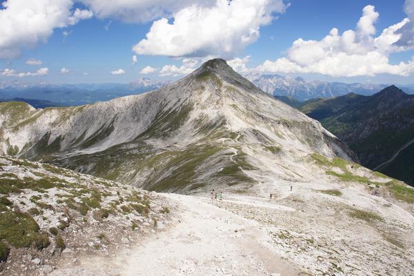 Blick über die Akarscharte zur Steirischen Kalkspitze.