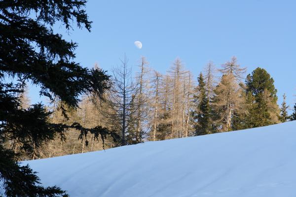 Die Sonne verzieht sich langsam hinter der Hochwildstelle und macht dem Mond Platz.