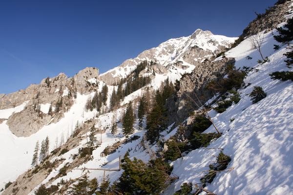 Dieser Teil der Tour wird auch bei der Abfahrt im um die Mittagszeit schon ziemlich weichen Schnee eine Herausforderung.