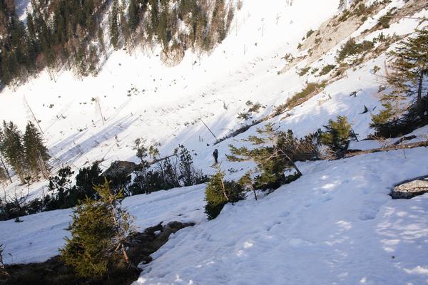 ... und damit auch im Steilgelände kaum Probleme (Ingrid in Bildmitte).