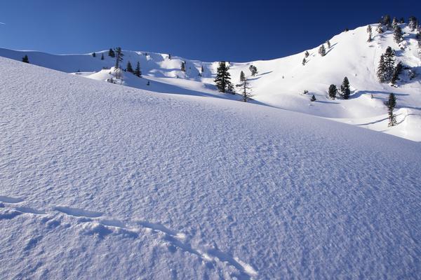 Herrlich weicher Pulverschnee auf sanften Hügelkuppen.