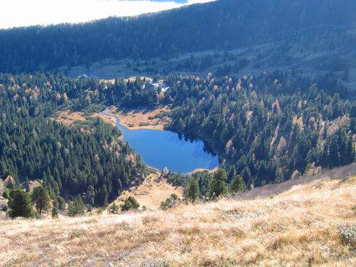Blick hinunter zum Kleinen Scheibelsee - links davon steht die Edelrautehütte