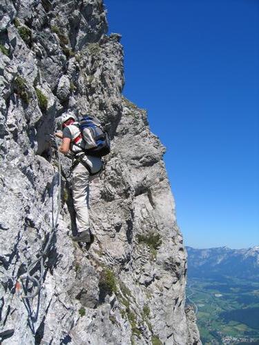 Ingrid beim luftigen Einstieg in den Wildfrauensteig