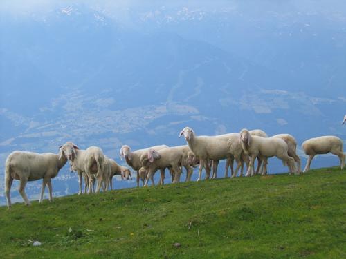 Viele Schafe am Sinabell - aufgefädelt für das Gruppenfoto