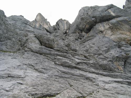 Unter mächten, teilweise überhängenden Felsen geht es Richtung Guttenberghaus