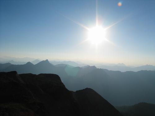 Und nochmal die sonnenbeschienene Bergwelt im Westen
