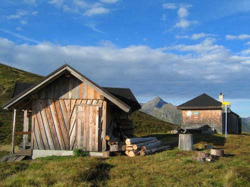 | Vorbei bei der Pleschnitzzinkenhütte - im Hintergrund der heute allgegenwärtige Höchstein |