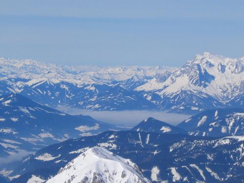 | Blick in die Hohen Tauern - manche Täler liegen im Nebel - rechts der Hochkönig |