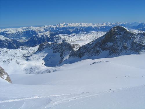 Dachstein-Gletscherbahn Bergstation / Hunerkogel - Dachsteinwarte / Seethalerhütte - Hoher Dachstein / Randkluft - Simonyhütte - Gjaidalm / Schilcherhaus - Oberfeld - Niederer Rumpler - Hoher Rumpler - Moderstein - Postenhaus Schneeberg - Schlepplift Talstation - Dachstein-Gletscherbahn Bergstation / Hunerkogel |