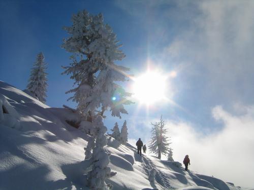 | Nur einmal treffen wir heute andere Tourengeher (kurz nach der Goliathschaukel) - eine größere Gruppe von ca. 15 Personen, die aber nur ca. 30 Minuten in die unberührte Natur vorgedrungen sind |