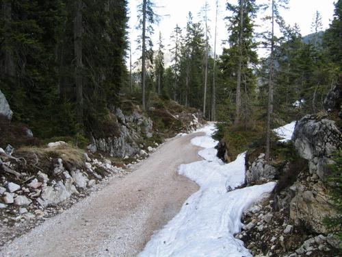 Bis 1.500 Meter Höhe gab es eine geschlossene - wenn manchmal auch nur mehr schmale - Schneedecke - darunter mußten die Schi meist getragen werden