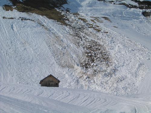Bräuningalm - im Hintergrund eine große Grundlawine